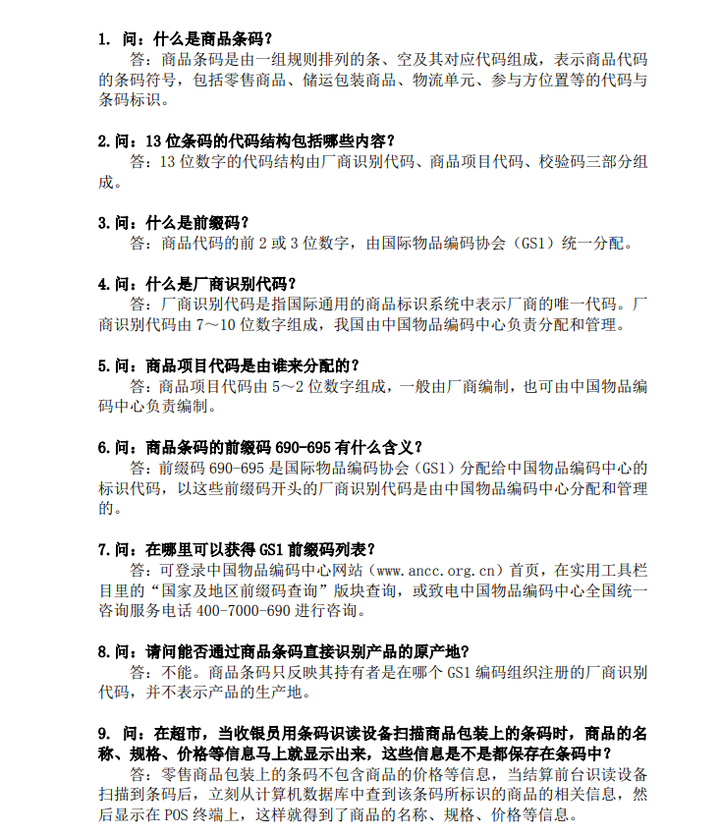 以下內(nèi)容來源于《商品條碼常見問題匯編》